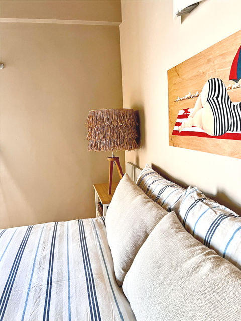 180m2 apartment, 100m2 of which have a terrace. It consists of a living room with two bedrooms, one with double beds, the other with single beds, which can be transformed into a double bed on request. Fully equipped kitchen, large bathroom with shower and double sinks. Terrace equipped with sun loungers, Balinese bed, hot and cold outdoor shower and barbecue. Patio with large table with automatic awning. The apartment is fully air conditioned and equipped with satellite TV.